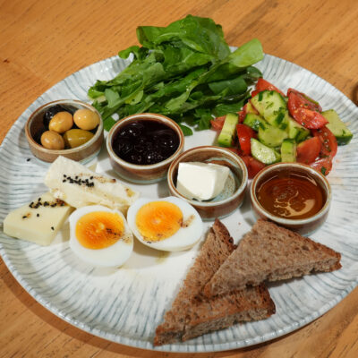 2 Adet çırpılmış yumıurta, frankfurter sosis, ekşi mayalı ekmek üstü... Taze kaşar, ezine peyniri, eski kaşar, hellim peyniri, haşlanmış yumurta,... Ezine beyaz peyniri, taze kaşar, haşlanmış yumurta, siyah ve yeşil... Ekşi mayalı ekmek üzerine sürülmüş taze beyaz peynir, avokado dilimleri,... Petek balı ve kaymak eşliğinde. (30gr - 30gr) Mevsime göre değişen özel meyve karışımı.