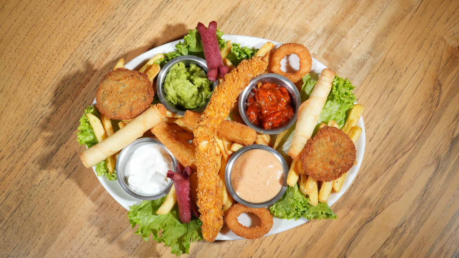 Çıtır Tavuk, Soğan Halkası, Sigara Böreği, Falafel Köfte, Çıtır Hellim, Dana Sosis, Avokado Püresi, Süzme Yoğurt Ve Acuka Eşliğinde.