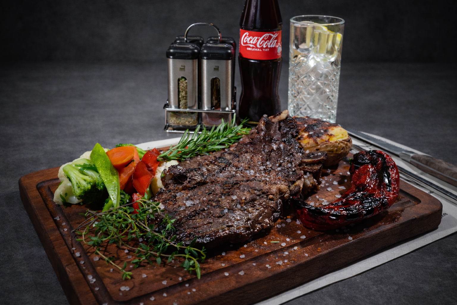 450 Gr dana pirzola, sebze mix, patates püresi, kırmızı kapya biber eşliğinde.